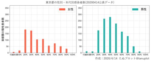最近は在宅勤務でずっと家にこもっています。仕事でデータ分析、ブログでデータ分析と1日中パソコンに向かっています。これってあんまり良くないですよね(汗)。 以前東京都の感染者を年代・性別に分けてプロットしました。そもそも人口分布が分からなけれ…